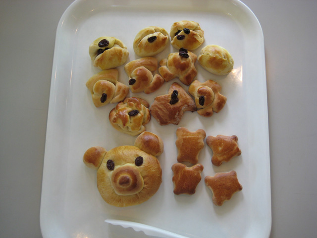 朝早く起こされた子グマちゃんは寝癖が残ったままです(笑)