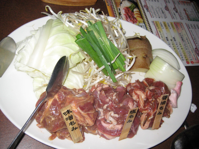 ↑塩・味噌・醤油の3種類の味が楽しめるラム肉。